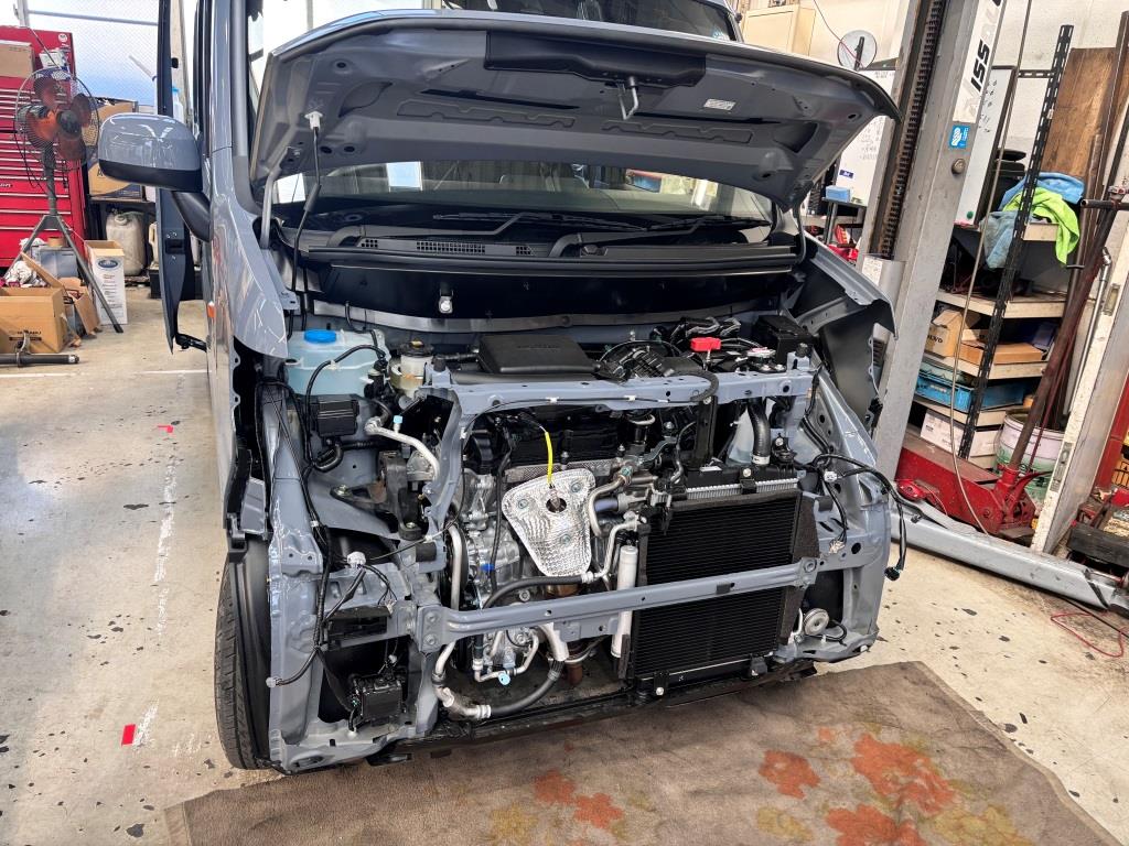 バンパー取付、左右でヘッドライトの隙間がちょっと違う。許容範囲ということでこのままで行きます。