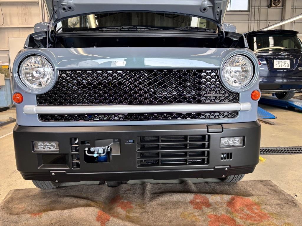 フロントバンパーを取り外しヘッドライトをクラッシックな丸形ヘッドライトに交換します。